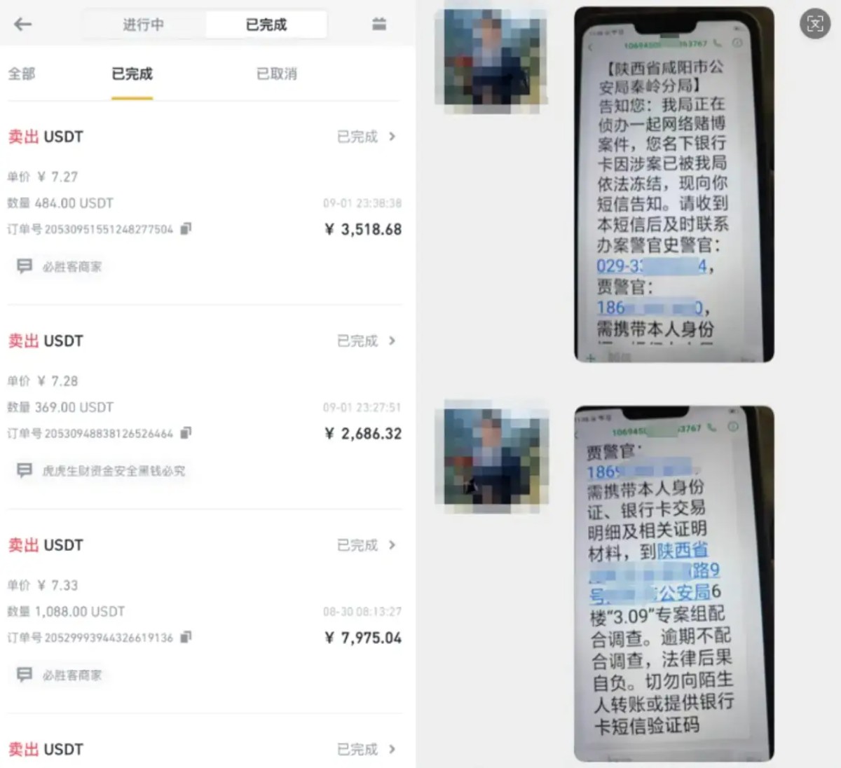 昨天接待了一个在币安交易所卖USDT导致冻卡的咨询,通过自己的支付宝收款,然后转到了其母亲的银行账户放着,结果这几天收到WD专案组的短信说是网络赌博资金,把其母亲的银行账户冻结了。