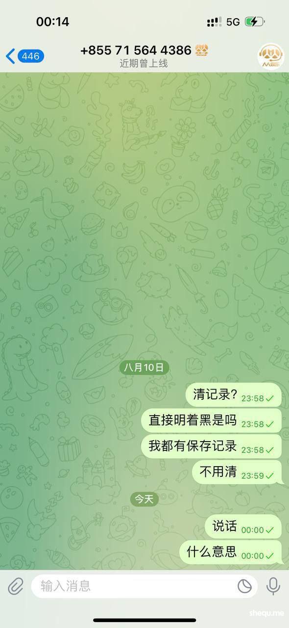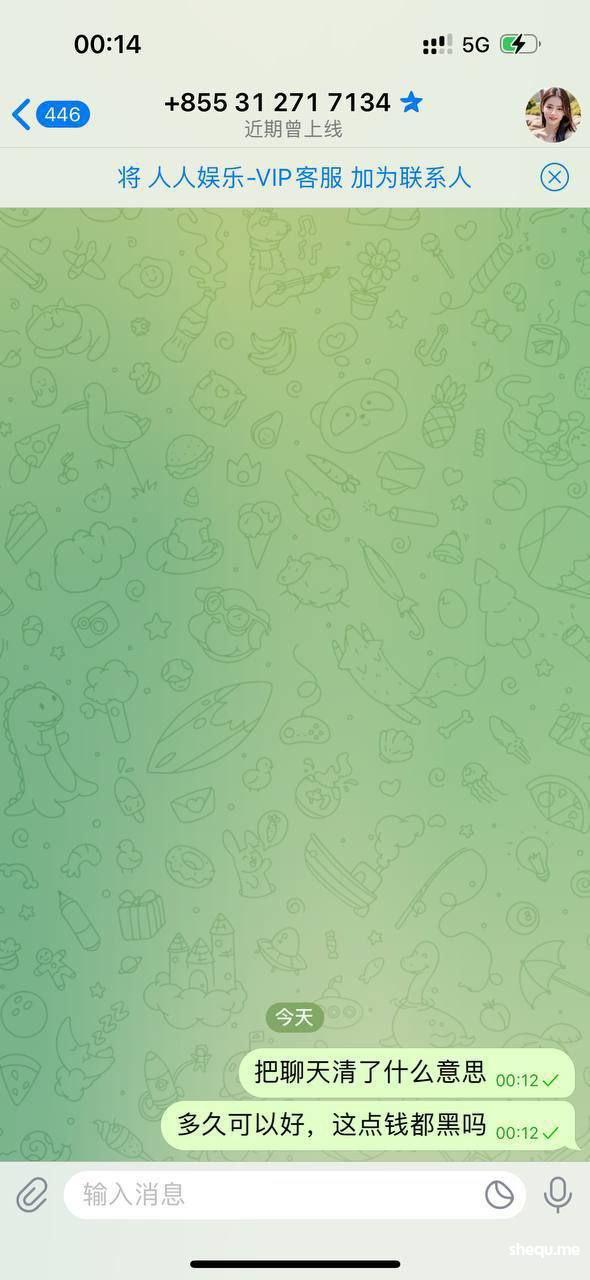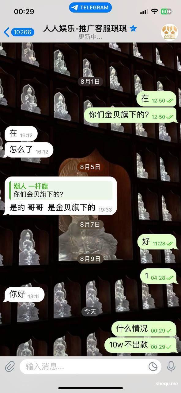 事情的起因是我在金贝公群频道 看到挂着直营盘 人人娱乐 于是便上了8万u 拉pg电子 拉到10万u下分 一天消息过去了 客服不处理下款 于是我便找到熊猫哥 询问情况 熊猫说金贝和人人没用关系 频道只是广告忘记下 于是便询问人人股东 他们股东说 我的账号有疑似团队作案 刷分行为 再排查 (我本人这2万u的盈利 均为正常游戏 可以找任何第3方机构检测)后来在别人的介绍下 我又联系到另外一位 (百晓生)说可以帮忙 于是我便提供账号 聊天记录给他 现在我的账号全部登不上去 客服也把聊天记录双清