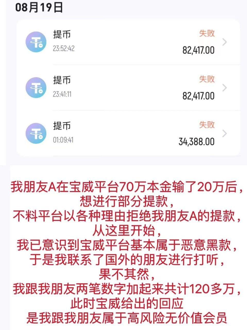 宝威杀猪盘 黑我120万人民币 出款告知需要再充100万进去才能出