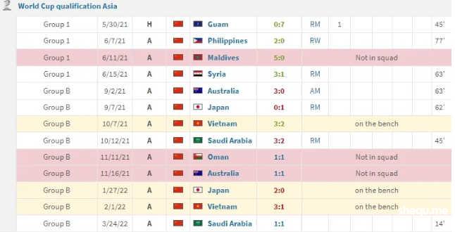 上一届世预赛前期,金敬道还是国足的主力球员,出战7场世预赛,并在对关岛时打进一球。金敬道最后一次代表国足比赛则是2022年3月24日,在国足1-1沙特之战替补登场12分钟。颇为巧合的是,沙特也是国足今晚18强赛对手。