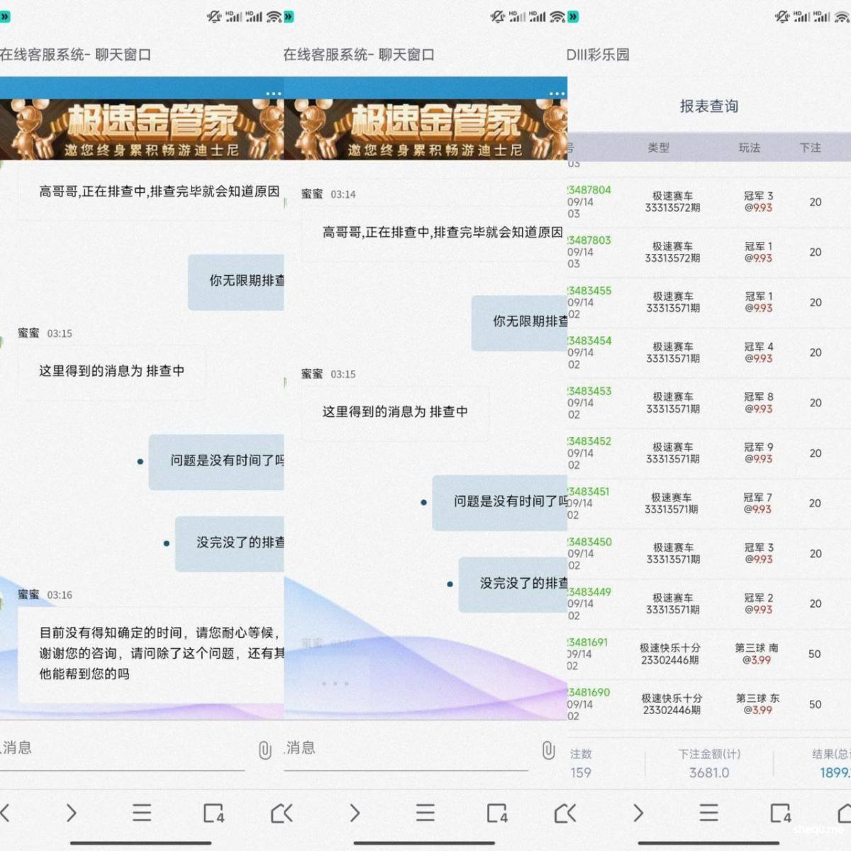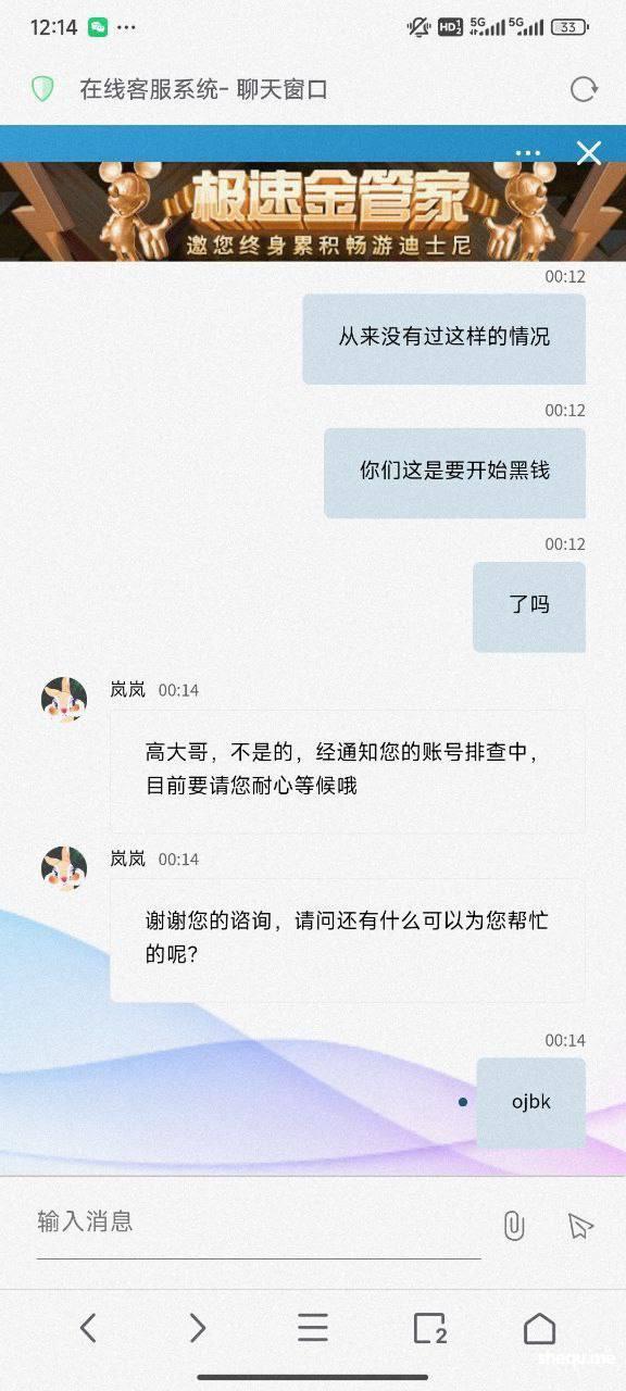 最近,迪士尼彩乐园3开始出现黑钱行为。之前我在这个平台玩极速赛车和极速快乐十分,提款几万都没问题,一直觉得迪士尼是彩票界的顶尖平台。然而,如今连这种有“硬实力”的平台也开始冻结账号,无限期审核。只要一问客服,得到的就是“无限期排查”的官方回复,完全无法正常提现。