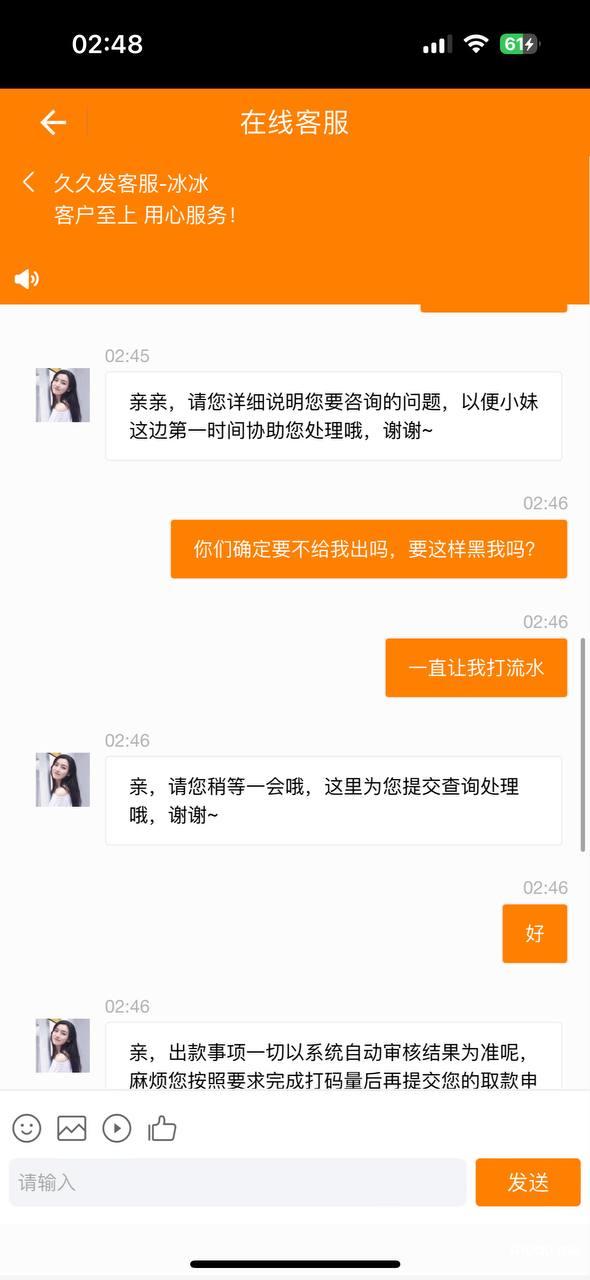 事情的经过就是周六在其平台充值然后购买了六合彩,中了15000左右,结果去提现的时候就不让提,直接退回,咨询客服,客服说流水不够,需要彩票打3倍流水,因为是老客户,就没寻思他们会搞这些,当我3倍流水完成后又说流水不够必须去捕鱼打5倍流水,当我完成后又让我去电子打5倍流水,我操你妈了个逼,这个平台是我见过最垃圾的平台,没有钱玩不起你就不要开信誉盘啊,这点钱你都黑?又不是第一天在你们平台玩,你们活不起了吗?输的只有8000块钱提款3000你也是不出,我干你奶奶个逼,他们肯定不止黑了一个会员,希望大家擦亮眼睛!