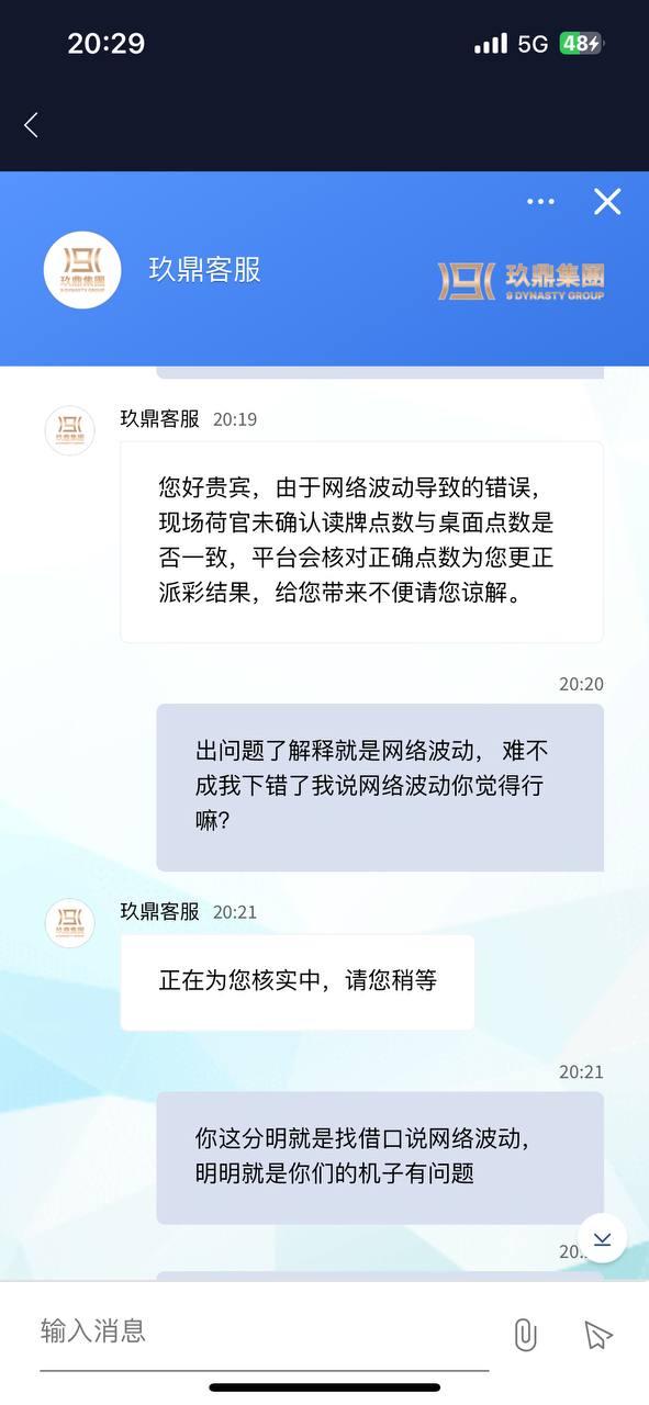 明显就是机子问题变牌,明明牌桌上面庄家(4+9)3点,读牌器变成(4+2)6点,咨询客服解释为网络波动原因造成,真好的一个解释啊,但凡你要这样说的话,那我是不是该说我下错了是网络波动的原因造成我手贱下的注!