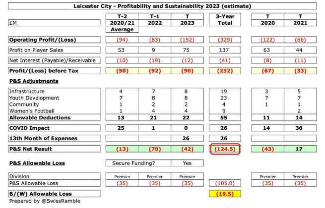 后来我们知道了,埃弗顿22/23赛季的亏损还是超标的,当年的倒霉蛋是谁?上面提了,正是莱斯特城。